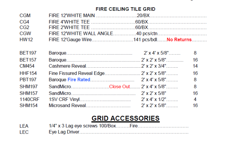 CEILING TILE GRID