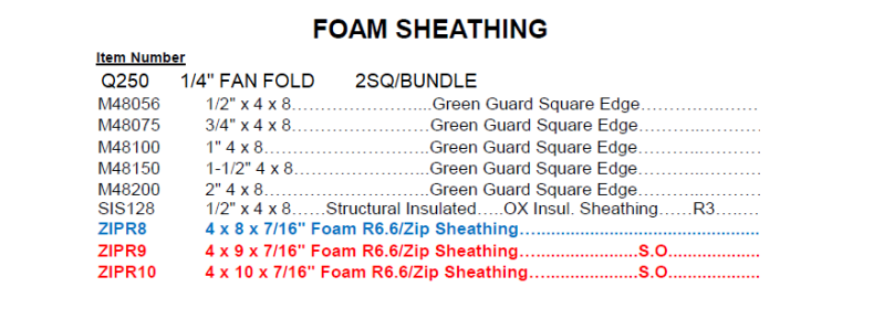 OX BOARD, KING SPAN, GREEN GUARD, FOAM ZIP, FOAM SHEATHING