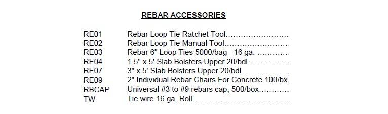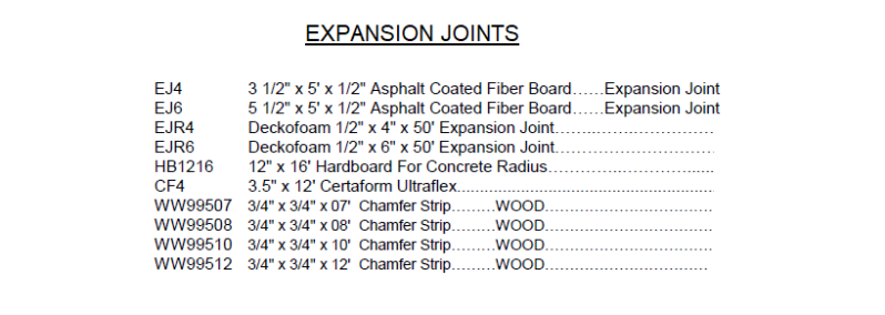 SONO - TUBE, PRE MIX, CONCRETE, RE BAR, GROUT,FORM TIES, FOUNDATION COATINGS, FORM OILS, SILT FENCE, MARKING PAINT, HYDRAULIC CEMENT, CURE AND SEAL, QUIKRETE, STAKES WATER PROOFING, FLAT TIES BASE TIES PORTLAND